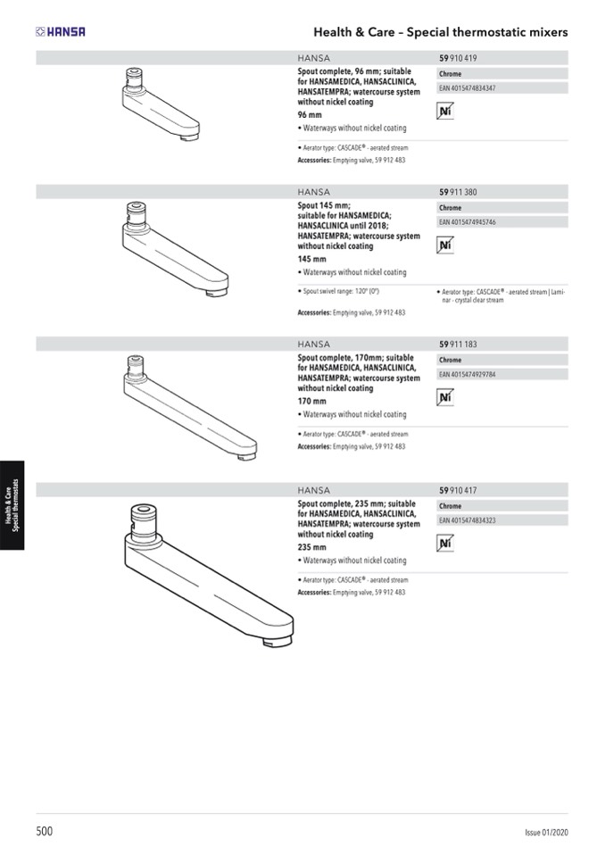 Spout complete, 96 mm; suitable