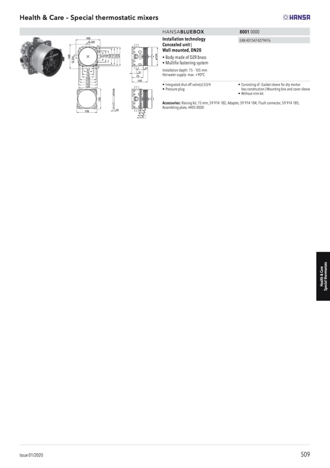 Accessories: Raising kit, 15 mm, 59 914 182; Adapter, 59 914 184; Flush connector, 59 914 185;