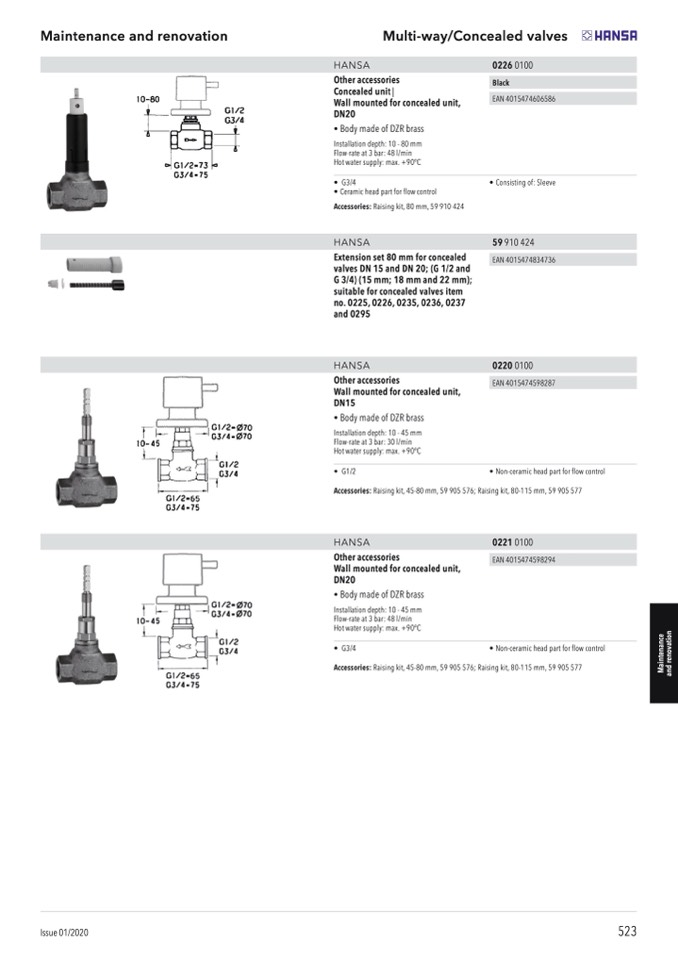 valves DN 15 and DN 20; (G 1/2 and