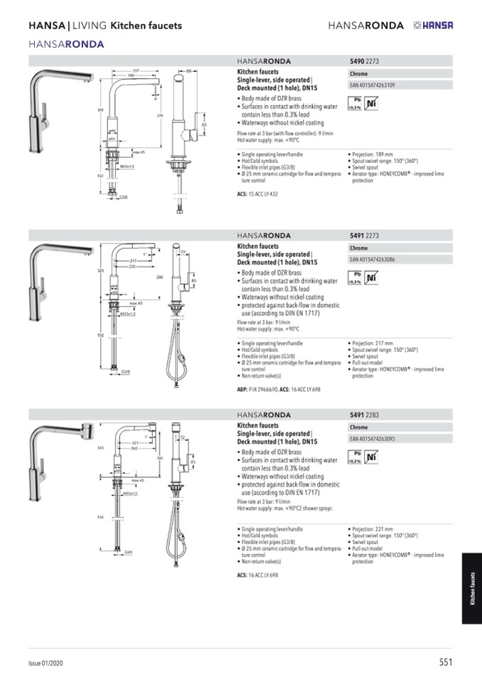 • Ø 25 mm ceramic cartridge for flow and tempera-