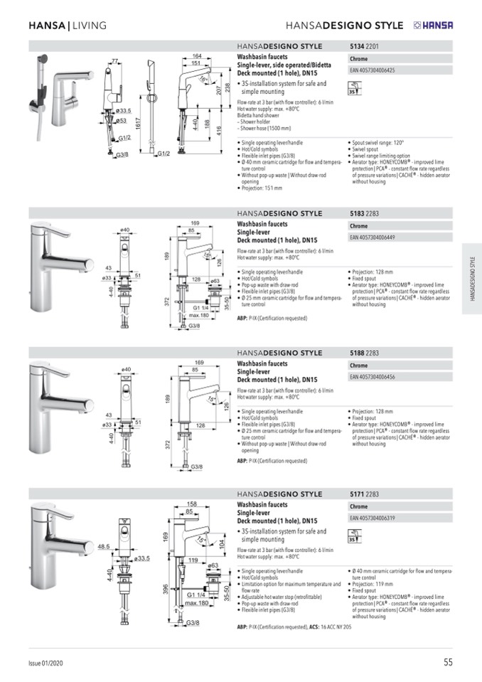 • Ø 40 mm ceramic cartridge for flow and tempera-