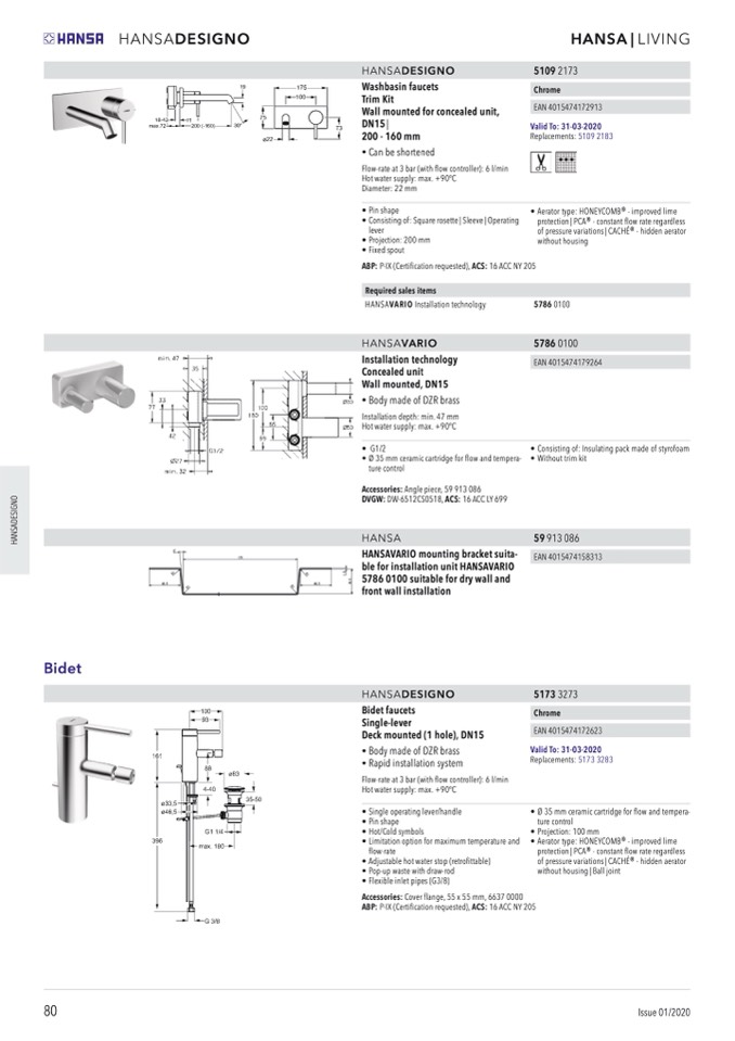 • Ø 35 mm ceramic cartridge for flow and tempera-