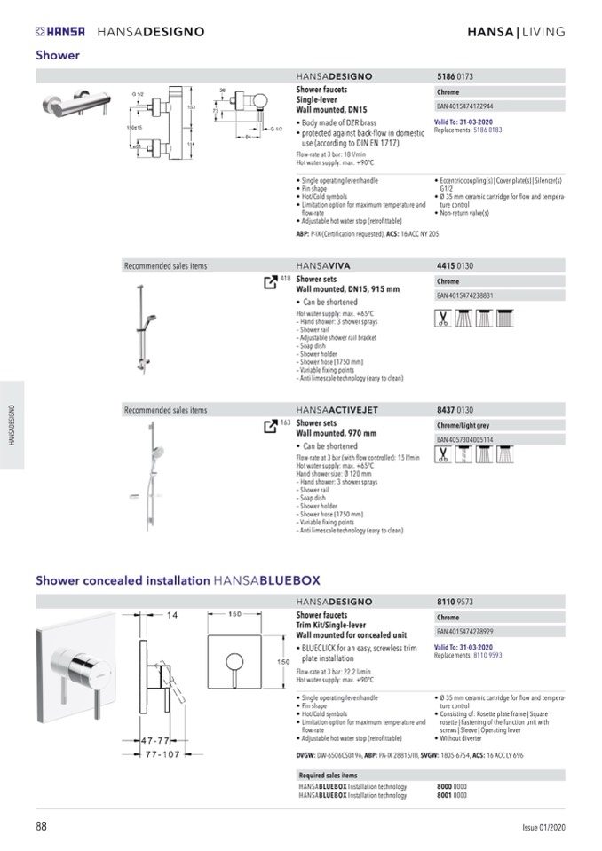 • Ø 35 mm ceramic cartridge for flow and tempera-