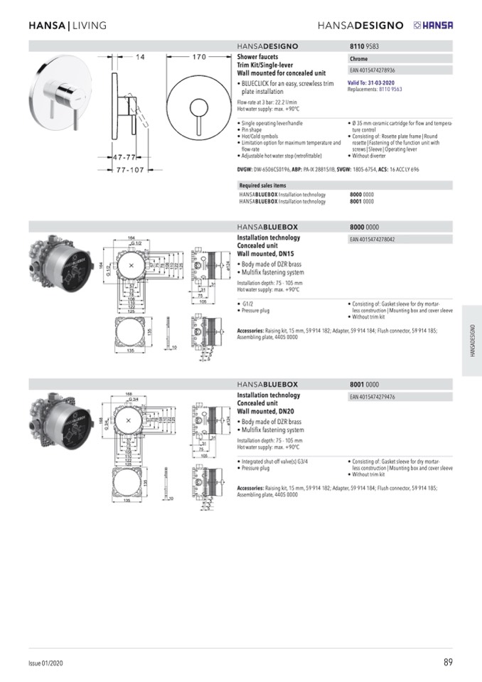 Accessories: Raising kit, 15 mm, 59 914 182; Adapter, 59 914 184; Flush connector, 59 914 185;