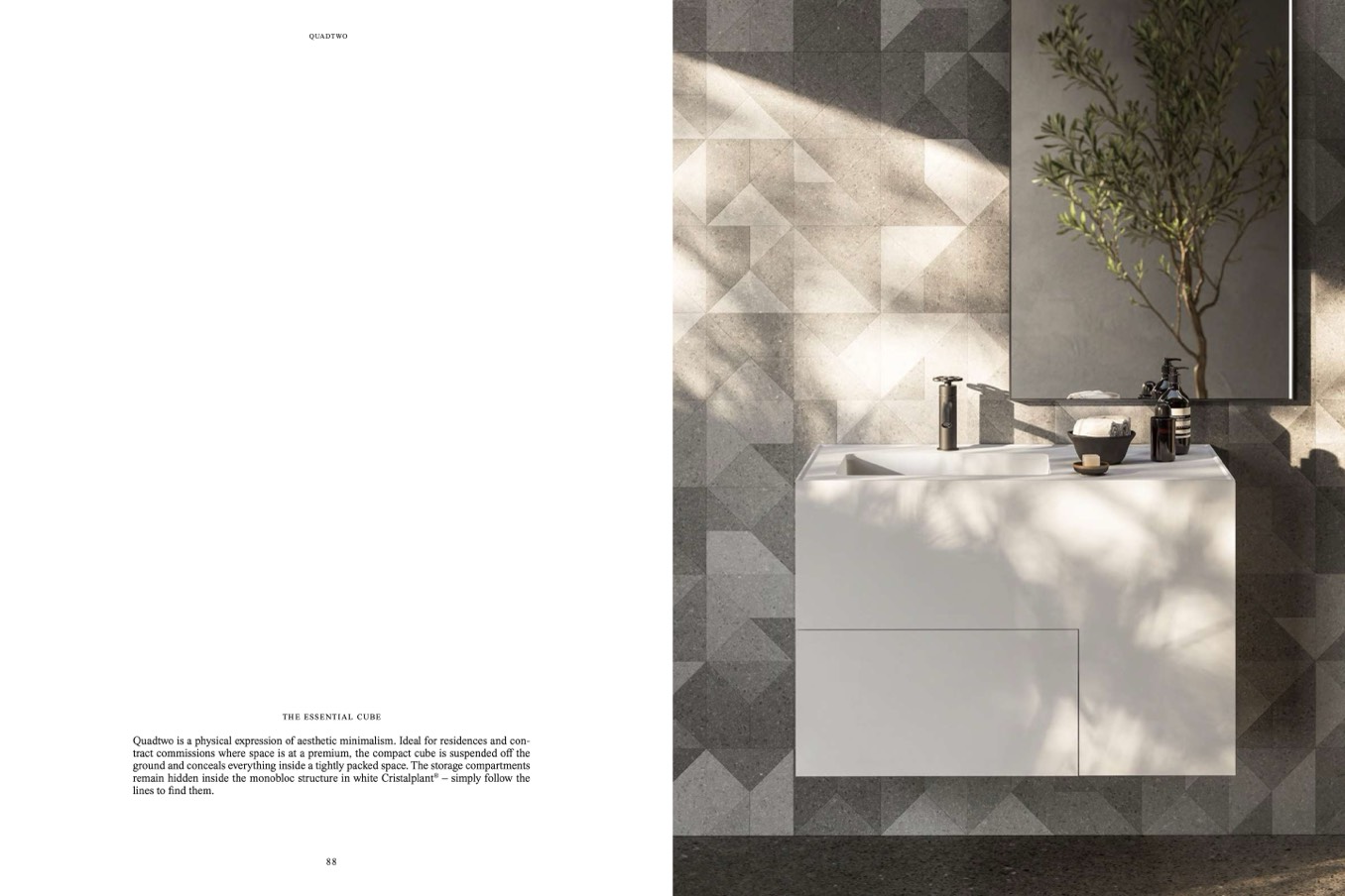 Quadtwo is a physical expression of aesthetic minimalism. Ideal for residences and con-