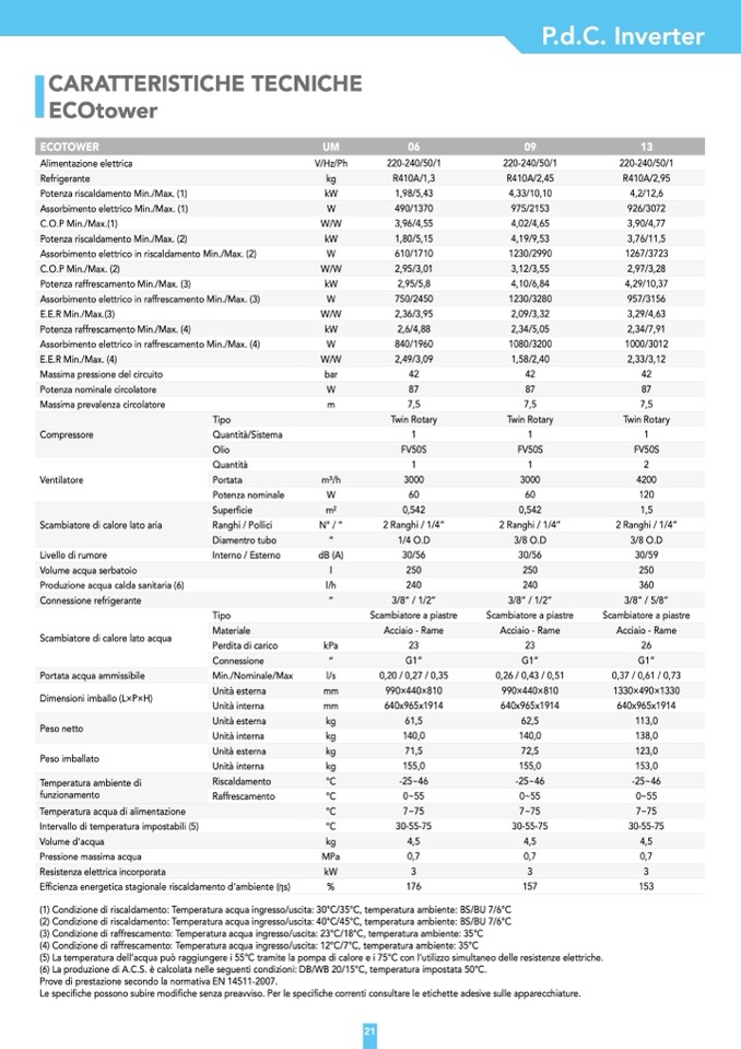 (5) La temperatura dell’acqua può raggiungere i 55°C tramite la pompa di calore e i 75°C con l’utilizzo simultaneo delle resistenze elettriche.