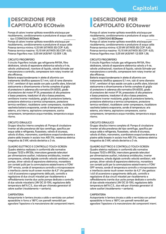 Potenza termica minima: 4,33 kW (A7/W35-30) COP: 4,65;