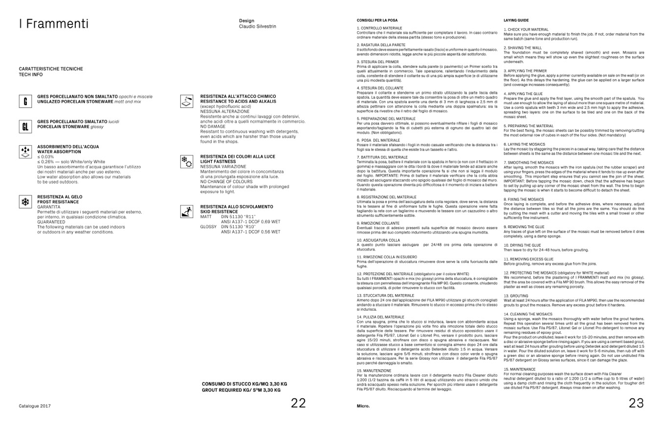 mosaic surface. Use Fila PS/87, Litonet Gel or Litonet Pro detergent to remove any
