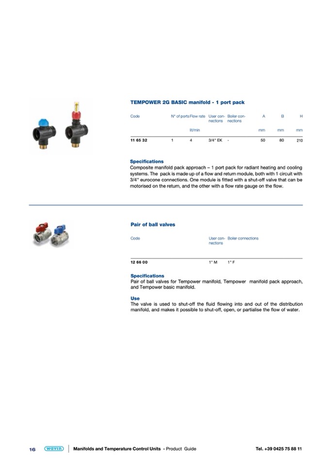 Pair of ball valves for Tempower manifold, Tempower manifold pack approach,