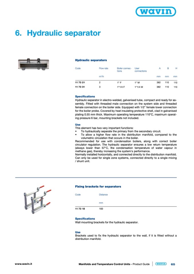 circulator regulation. The hydraulic separator ensures a low return temperature