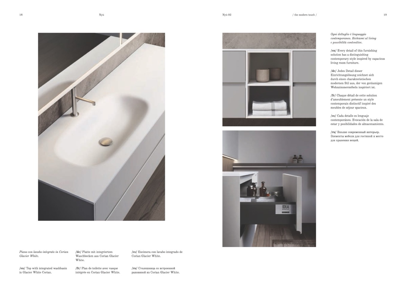 раковиной из Corian Glacier White.
