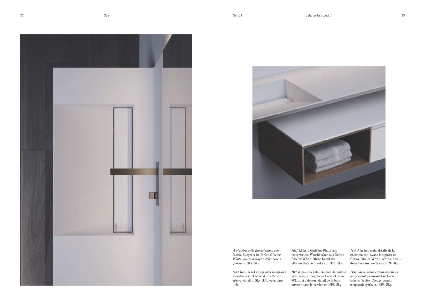 lavabo integrato in Corian Glacier