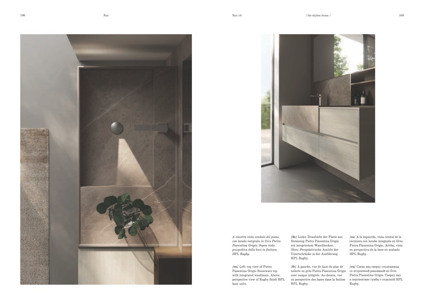 con lavabo integrato in Gres Pietra