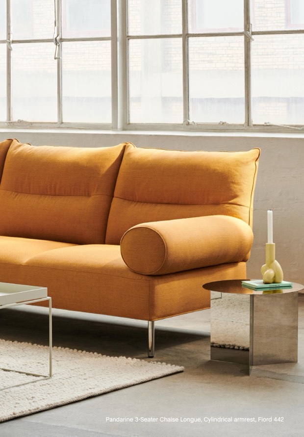 Pandarine 3-Seater Chaise Longue, Cylindrical armrest, Fiord 442