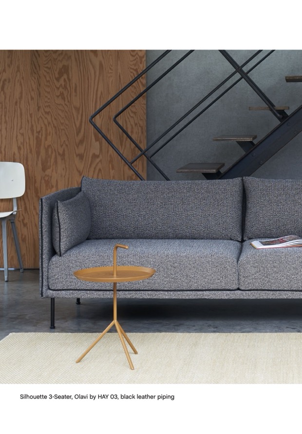 Silhouette 3-Seater, Olavi by HAY 03, black leather piping