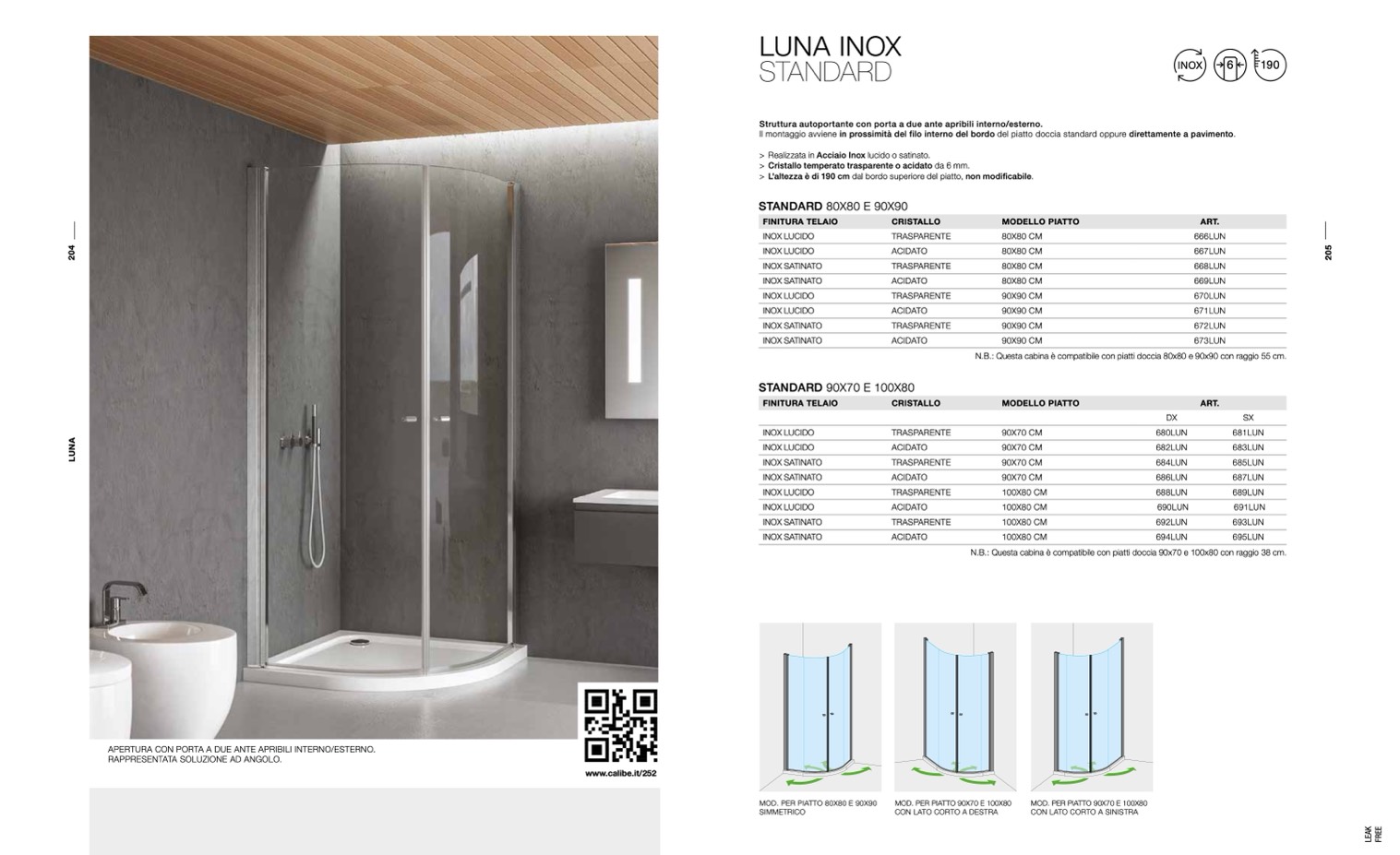 N.B.: Questa cabina è compatibile con piatti doccia 80x80 e 90x90 con raggio 55 cm.