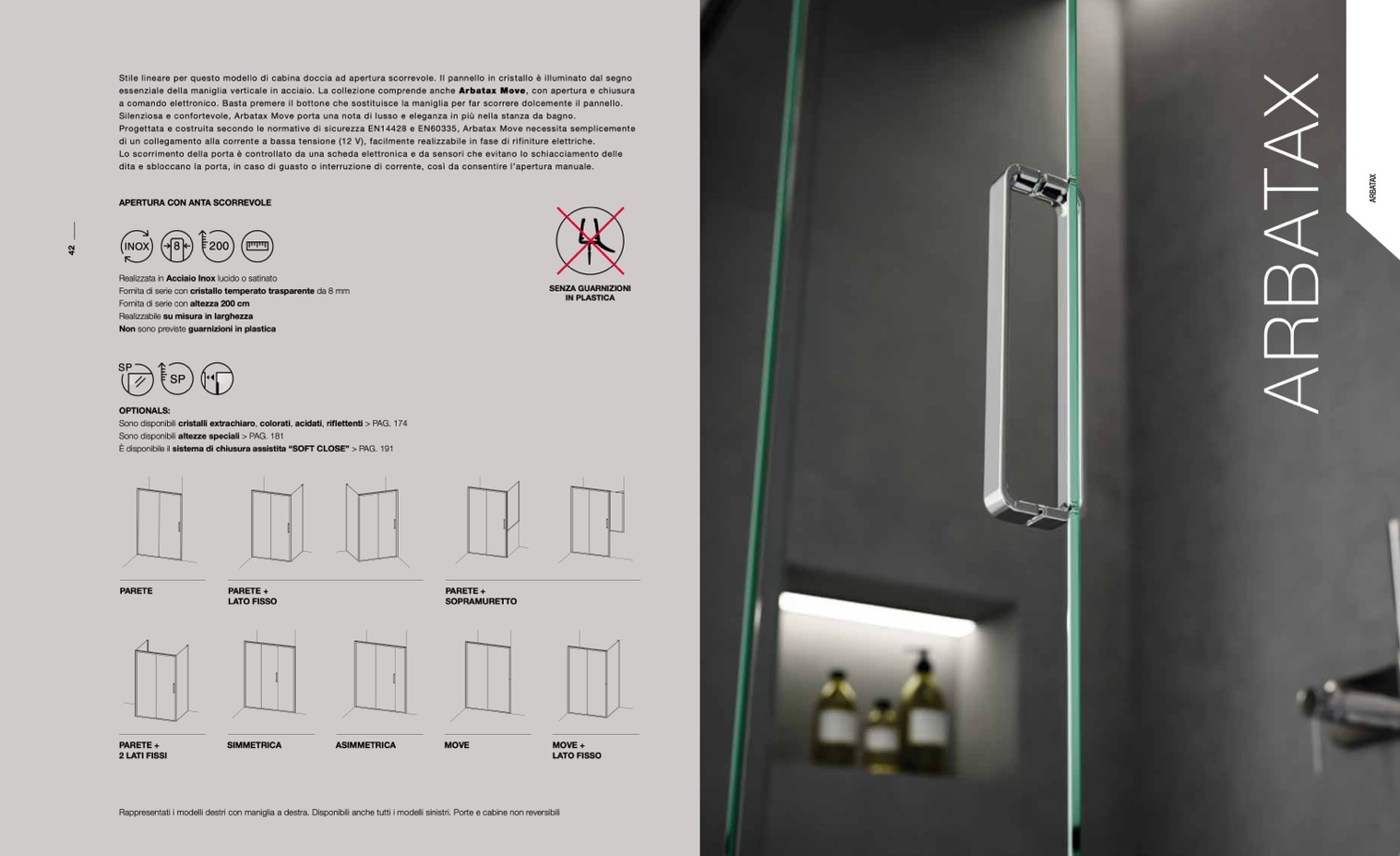 essenziale della maniglia verticale in acciaio. La collezione comprende anche Arbatax Move, con apertura e chiusura