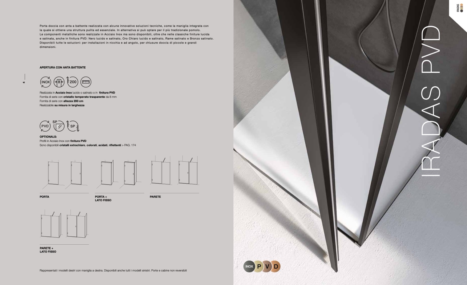 Rappresentati i modelli destri con maniglia a destra. Disponibili anche tutti i modelli sinistri. Porte e cabine non reversibili