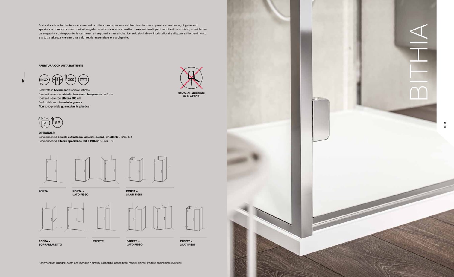 Rappresentati i modelli destri con maniglia a destra. Disponibili anche tutti i modelli sinistri. Porte e cabine non reversibili