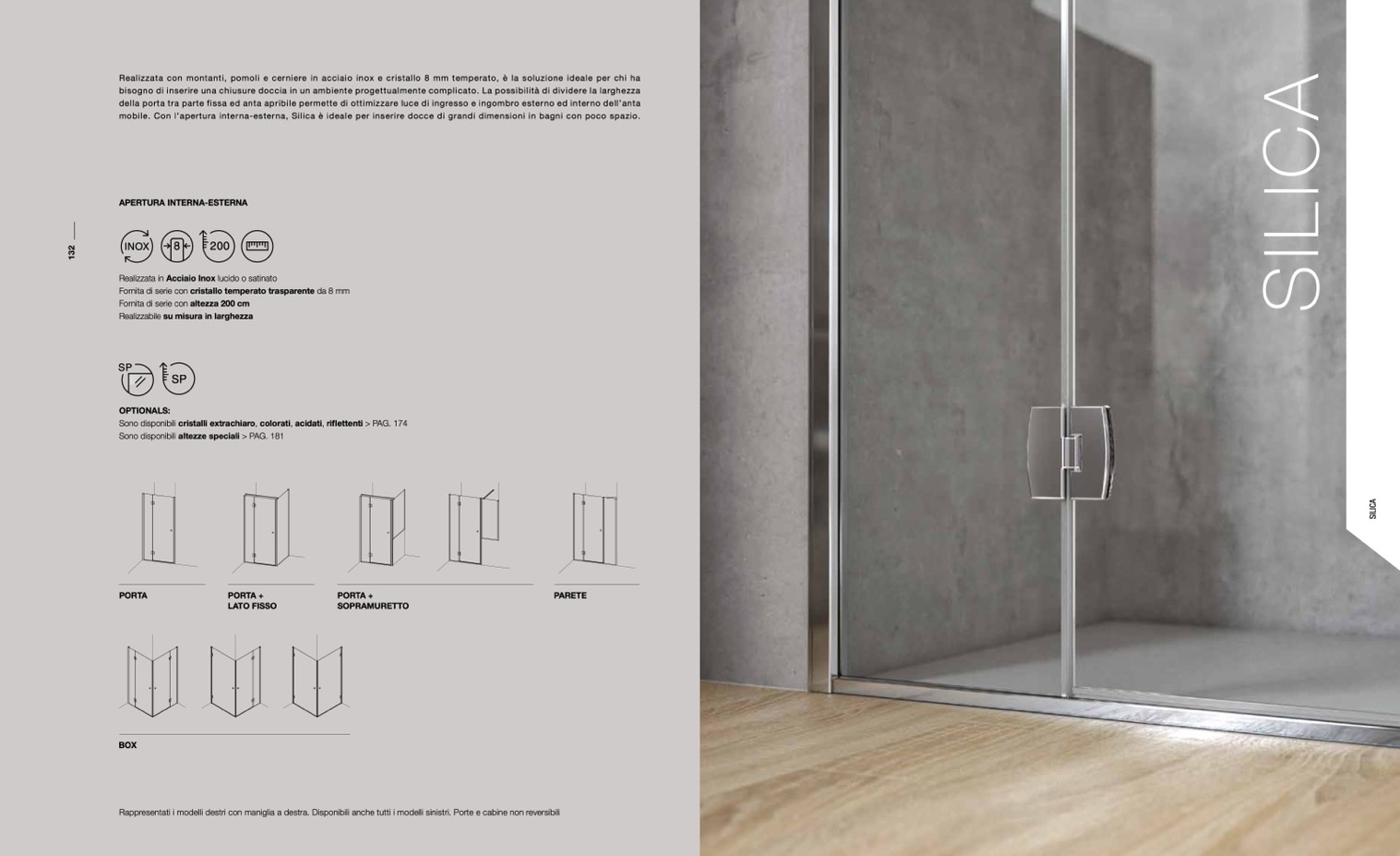 Rappresentati i modelli destri con maniglia a destra. Disponibili anche tutti i modelli sinistri. Porte e cabine non reversibili