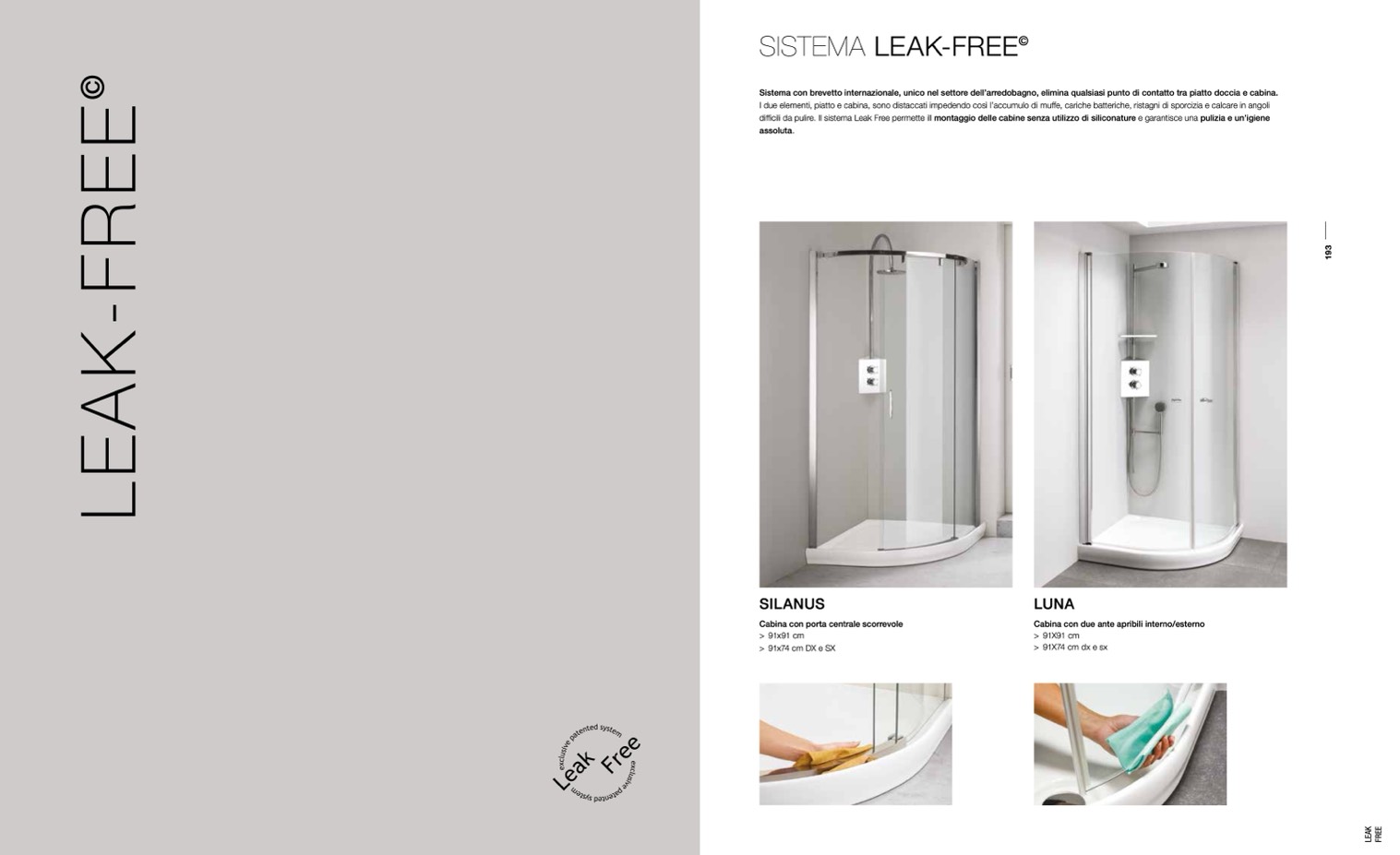 difficili da pulire. Il sistema Leak Free permette ill montaggio delle cabine senza utilizzo di siliconature e garantisce una pulizia e un’igiene