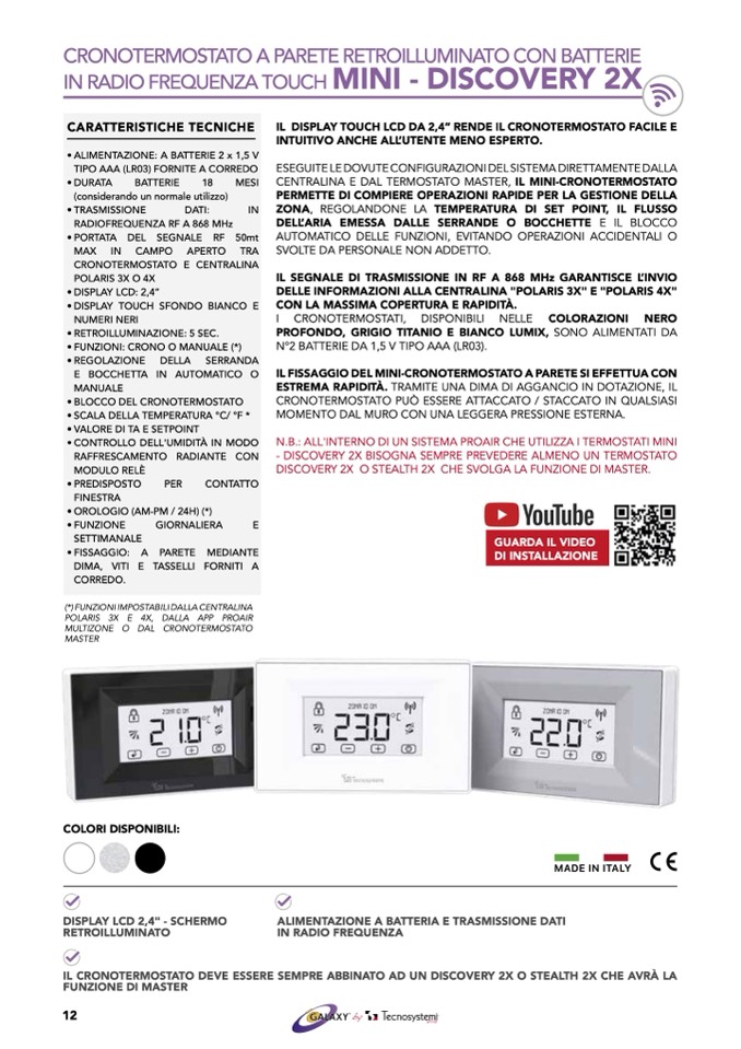 IL CRONOTERMOSTATO DEVE ESSERE SEMPRE ABBINATO AD UN DISCOVERY 2X O STEALTH 2X CHE AVRÀ LA