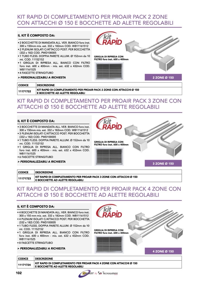 KIT RAPID DI COMPLETAMENTO PER PROAIR PACK 3 ZONE CON ATTACCHI Ø 150