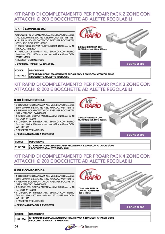 KIT RAPID DI COMPLETAMENTO PER PROAIR PACK 3 ZONE CON ATTACCHI Ø 200