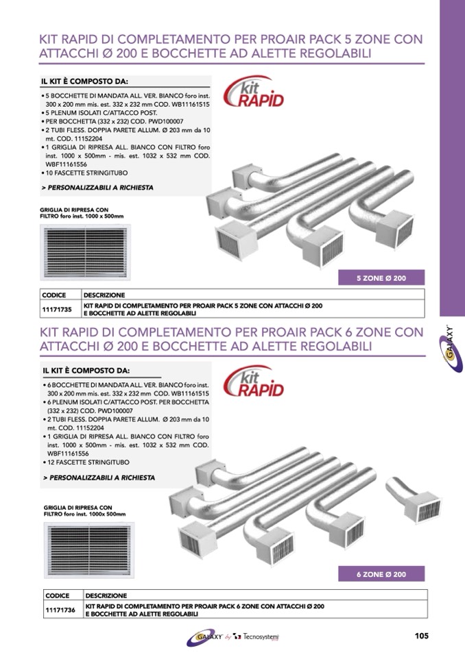 KIT RAPID DI COMPLETAMENTO PER PROAIR PACK 6 ZONE CON ATTACCHI Ø 200