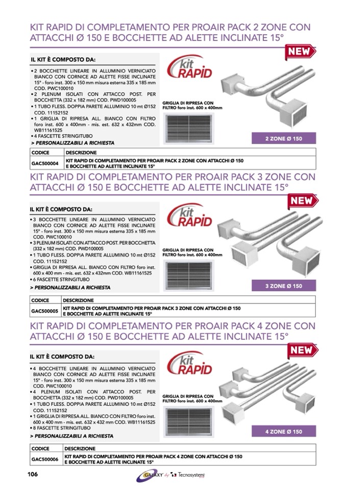 KIT RAPID DI COMPLETAMENTO PER PROAIR PACK 3 ZONE CON ATTACCHI Ø 150