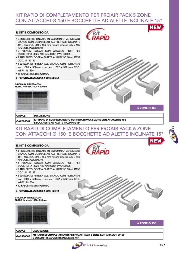 KIT RAPID DI COMPLETAMENTO PER PROAIR PACK 5 ZONE CON ATTACCHI Ø 150