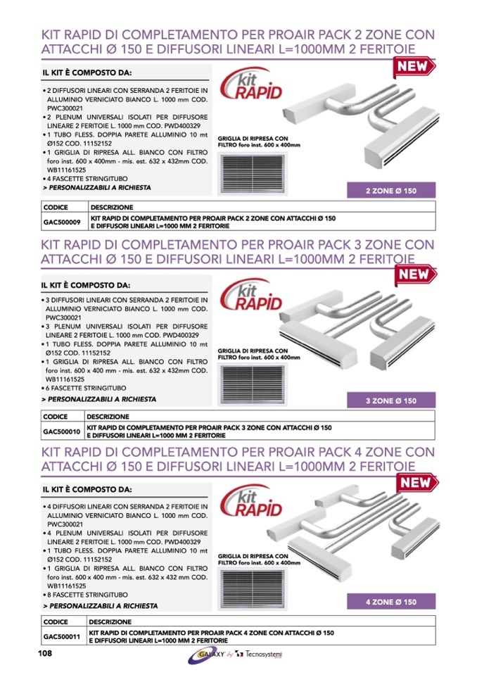 KIT RAPID DI COMPLETAMENTO PER PROAIR PACK 3 ZONE CON ATTACCHI Ø 150