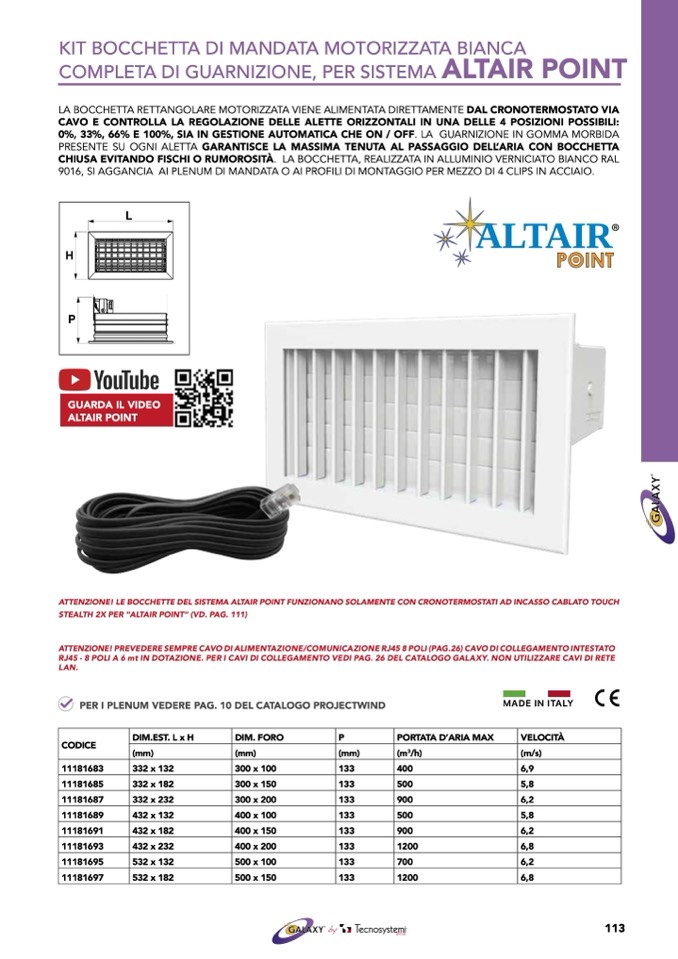 ATTENZIONE! LE BOCCHETTE DEL SISTEMA ALTAIR POINT FUNZIONANO SOLAMENTE CON CRONOTERMOSTATI AD INCASSO CABLATO TOUCH