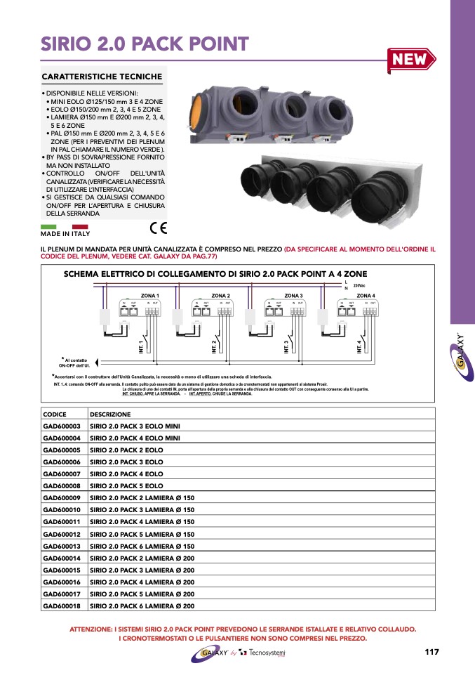 ATTENZIONE: I SISTEMI SIRIO 2.0 PACK POINT PREVEDONO LE SERRANDE ISTALLATE E RELATIVO COLLAUDO.