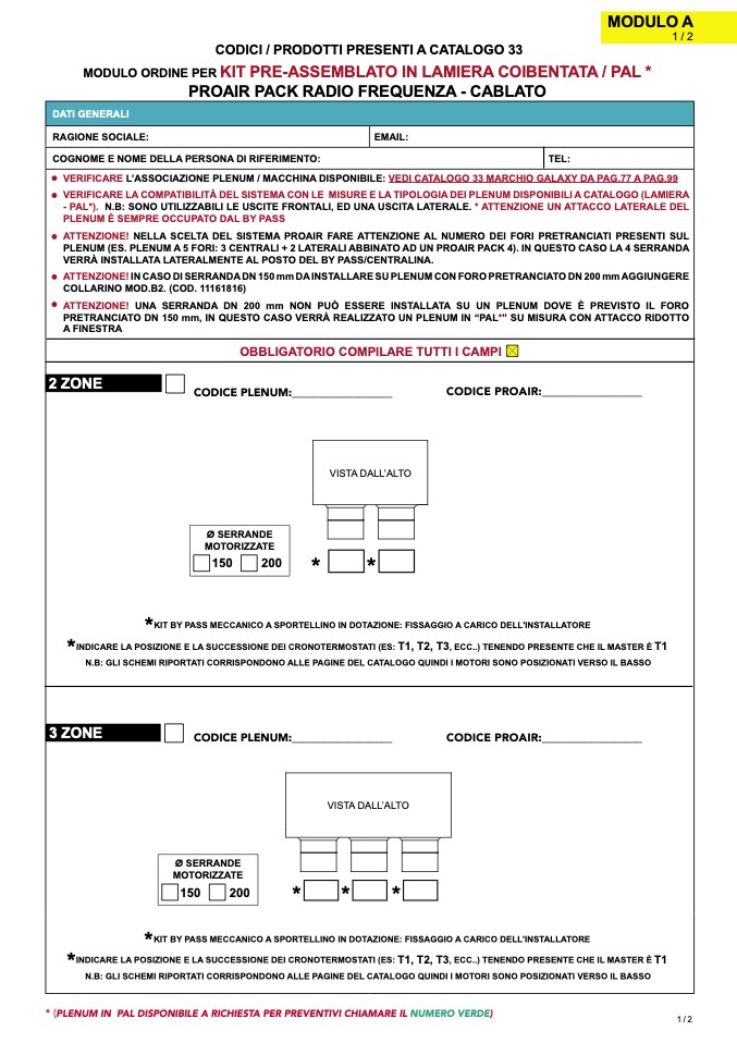 • ATTENZIONE! NELLA SCELTA DEL SISTEMA PROAIR FARE ATTENZIONE AL NUMERO DEI FORI PRETRANCIATI PRESENTI SUL