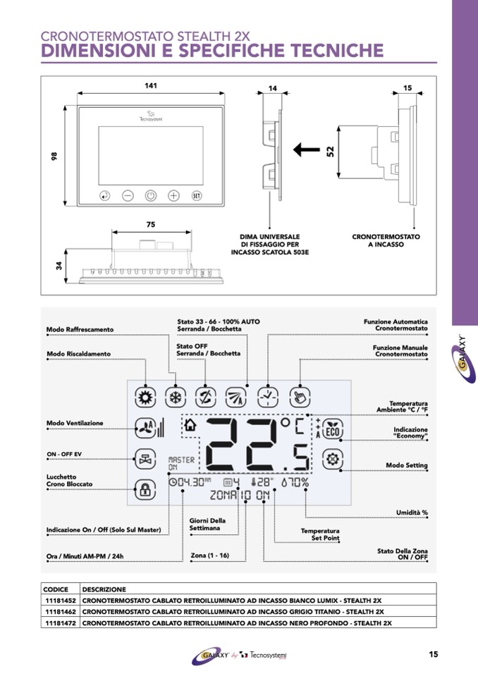 CRONOTERMOSTATO CABLATO RETROILLUMINATO AD INCASSO BIANCO LUMIX - STEALTH 2X