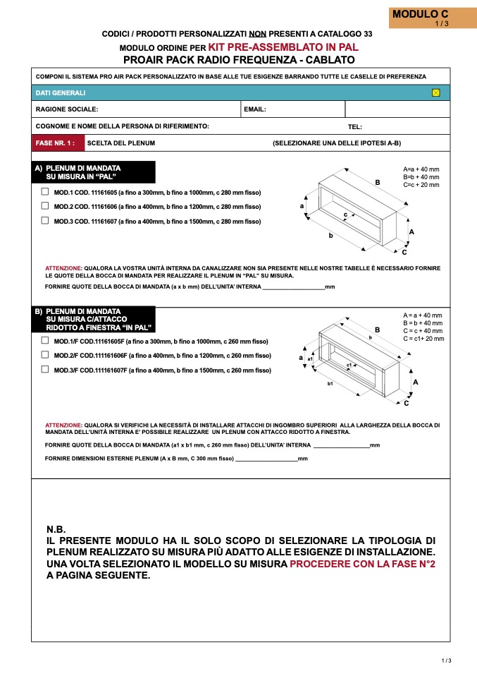 FORNIRE DIMENSIONI ESTERNE PLENUM (A x B mm, C 300 mm fisso) ____________________mm