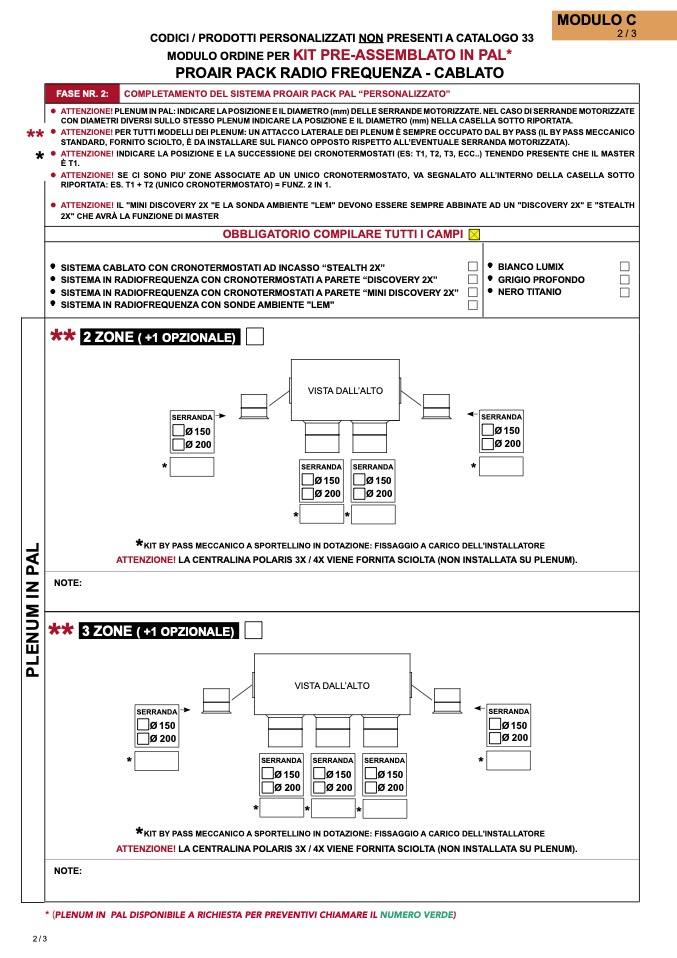CON DIAMETRI DIVERSI SULLO STESSO PLENUM INDICARE LA POSIZIONE E IL DIAMETRO (mm) NELLA CASELLA SOTTO RIPORTATA.