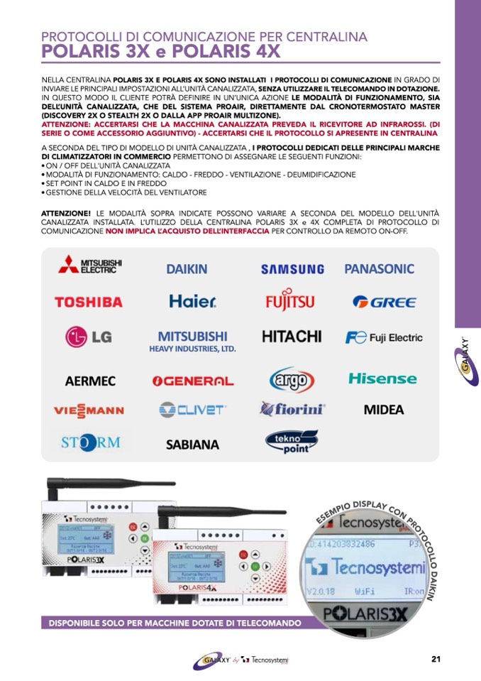 NELLA CENTRALINA POLARIS 3X E POLARIS 4X SONO INSTALLATI I PROTOCOLLI DI COMUNICAZIONE IN GRADO DI