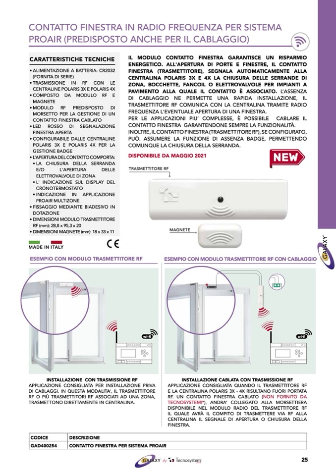 CONTATTO FINESTRA PER SISTEMA PROAIR