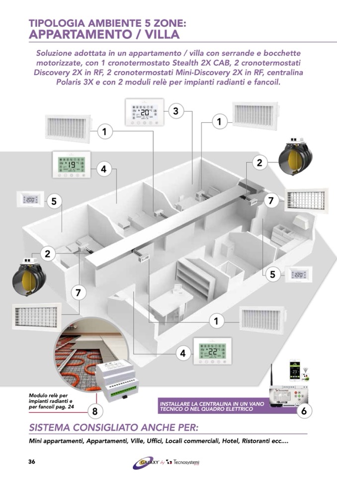 Polaris 3X e con 2 moduli relè per impianti radianti e fancoil.