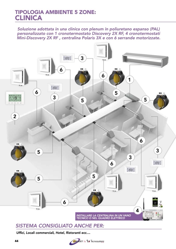Mini-Discovery 2X RF , centralina Polaris 3X e con 6 serrande motorizzate.
