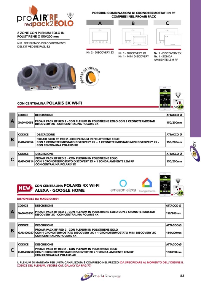 PROAIR PACK RF RED 2 - CON PLENUM IN POLISTIRENE EOLO CON 2 CRONOTERMOSTATI