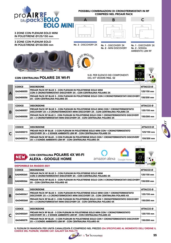 PROAIR PACK RF BLUE 3 - CON PLENUM IN POLISTIRENE EOLO CON 3 CRONOTERMOSTATI DISCOVERY
