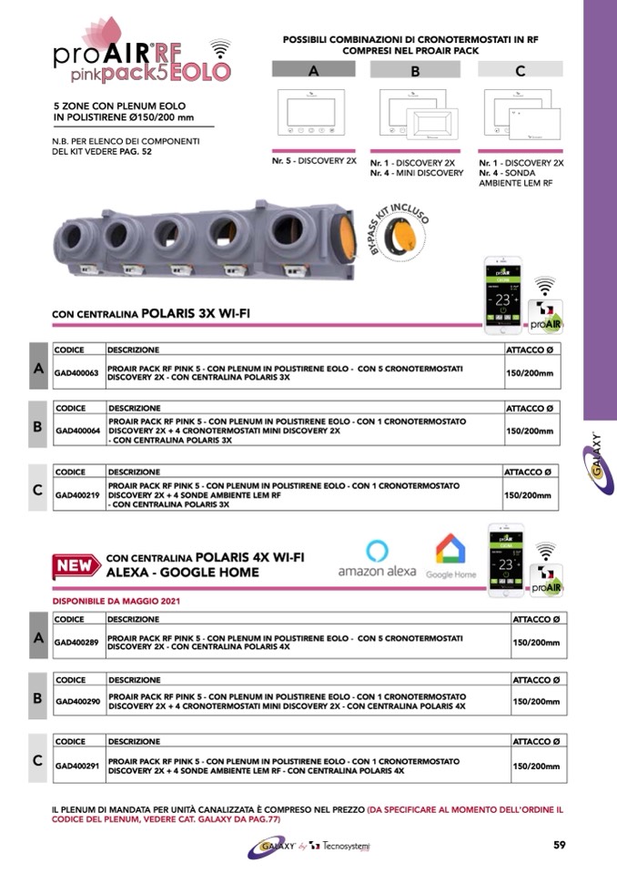 PROAIR PACK RF PINK 5 - CON PLENUM IN POLISTIRENE EOLO - CON 5 CRONOTERMOSTATI