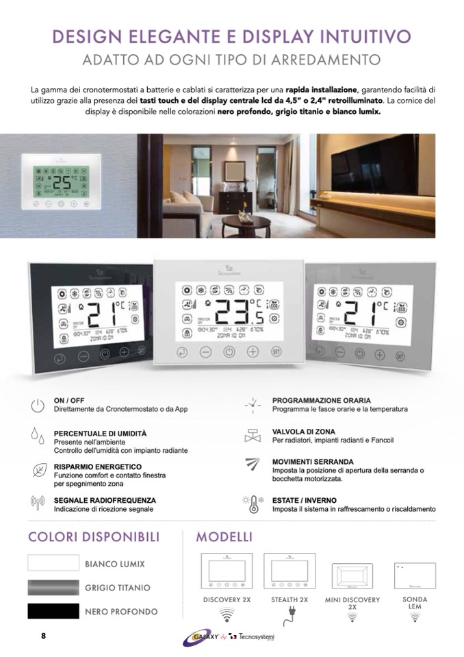 La gamma dei cronotermostati a batterie e cablati si caratterizza per una