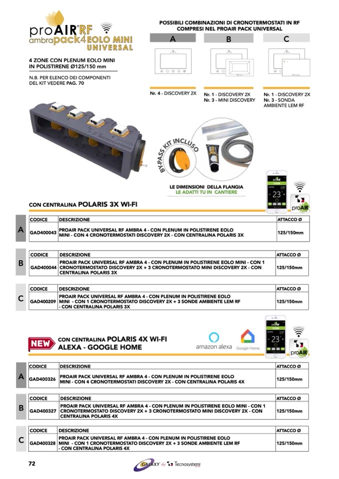 PROAIR PACK UNIVERSAL RF AMBRA 4 - CON PLENUM IN POLISTIRENE EOLO MINI - CON 1