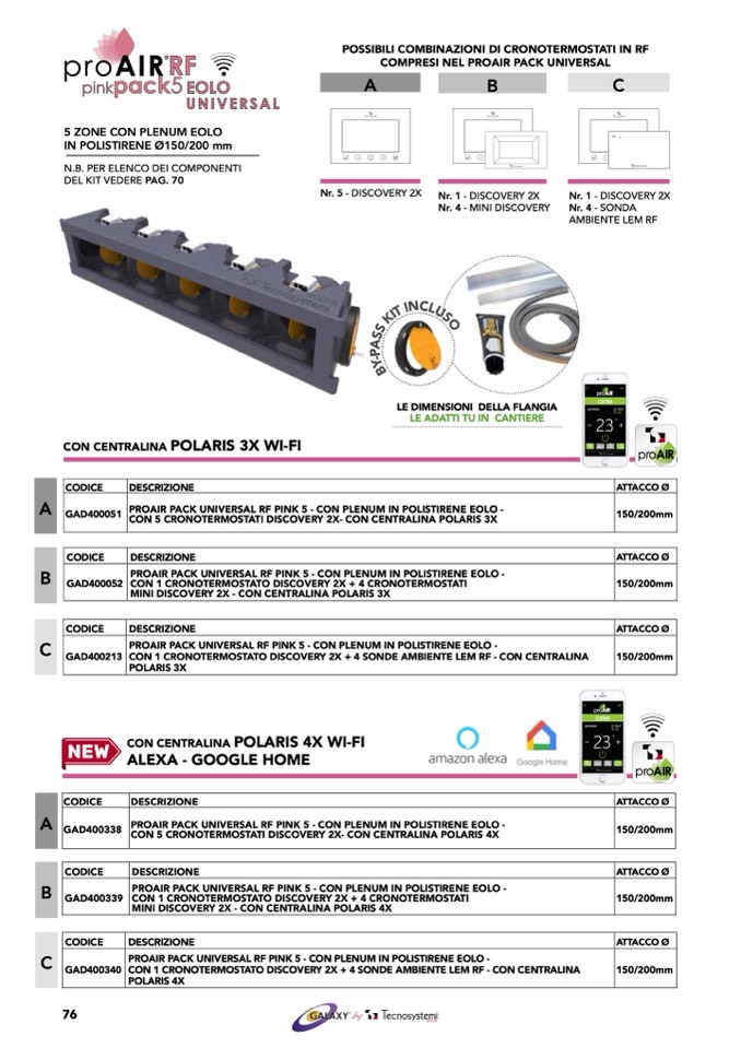 PROAIR PACK UNIVERSAL RF PINK 5 - CON PLENUM IN POLISTIRENE EOLO -