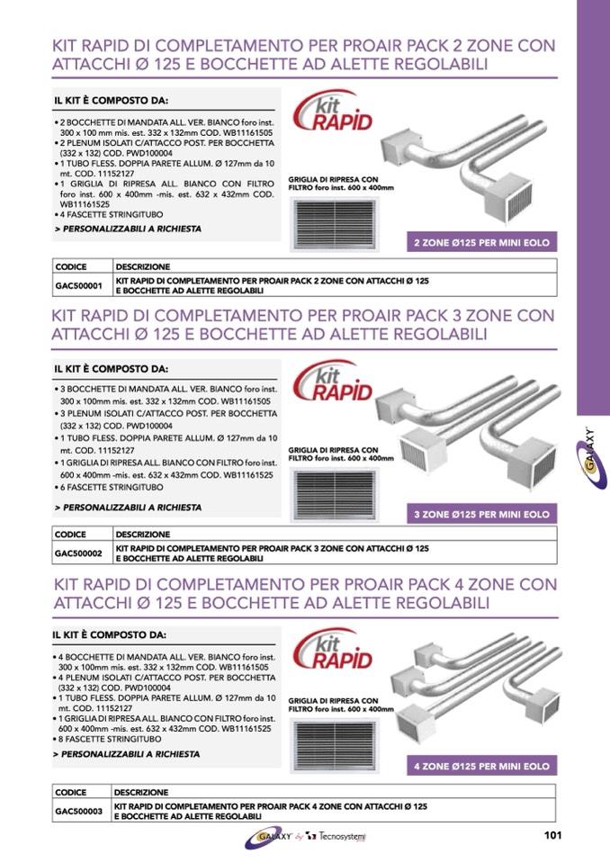 KIT RAPID DI COMPLETAMENTO PER PROAIR PACK 3 ZONE CON ATTACCHI Ø 125