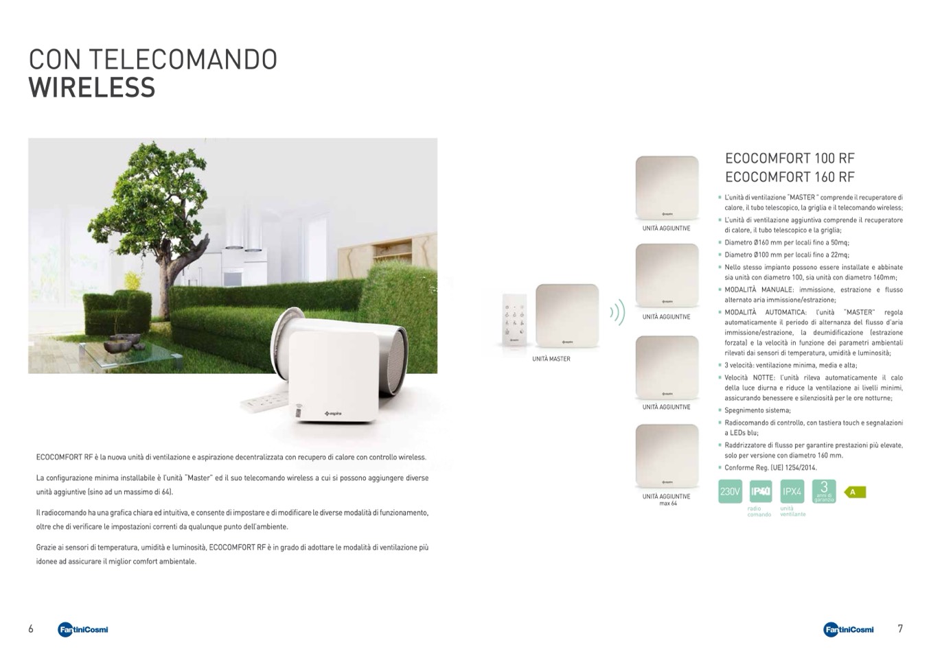 ECOCOMFORT RF è la nuova unità di ventilazione e aspirazione decentralizzata con recupero di calore con controllo wireless.